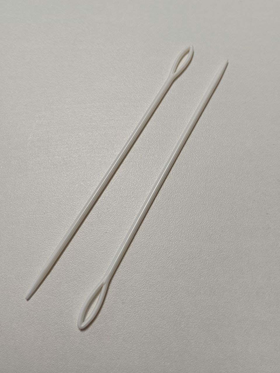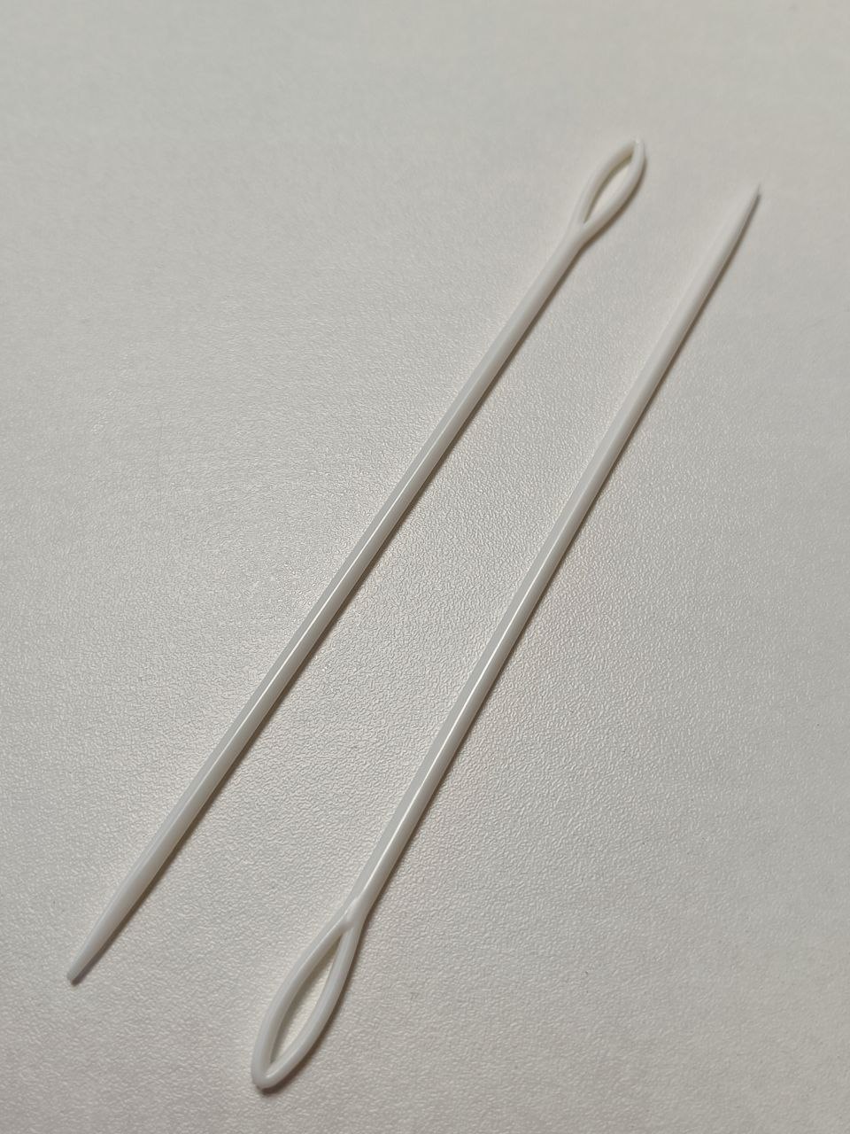 Остриё пластиковой иглы входит в полотно, раздвигая пряжу, а не прокалывая и «расщепляя» нить на волокна. Это позволяет: