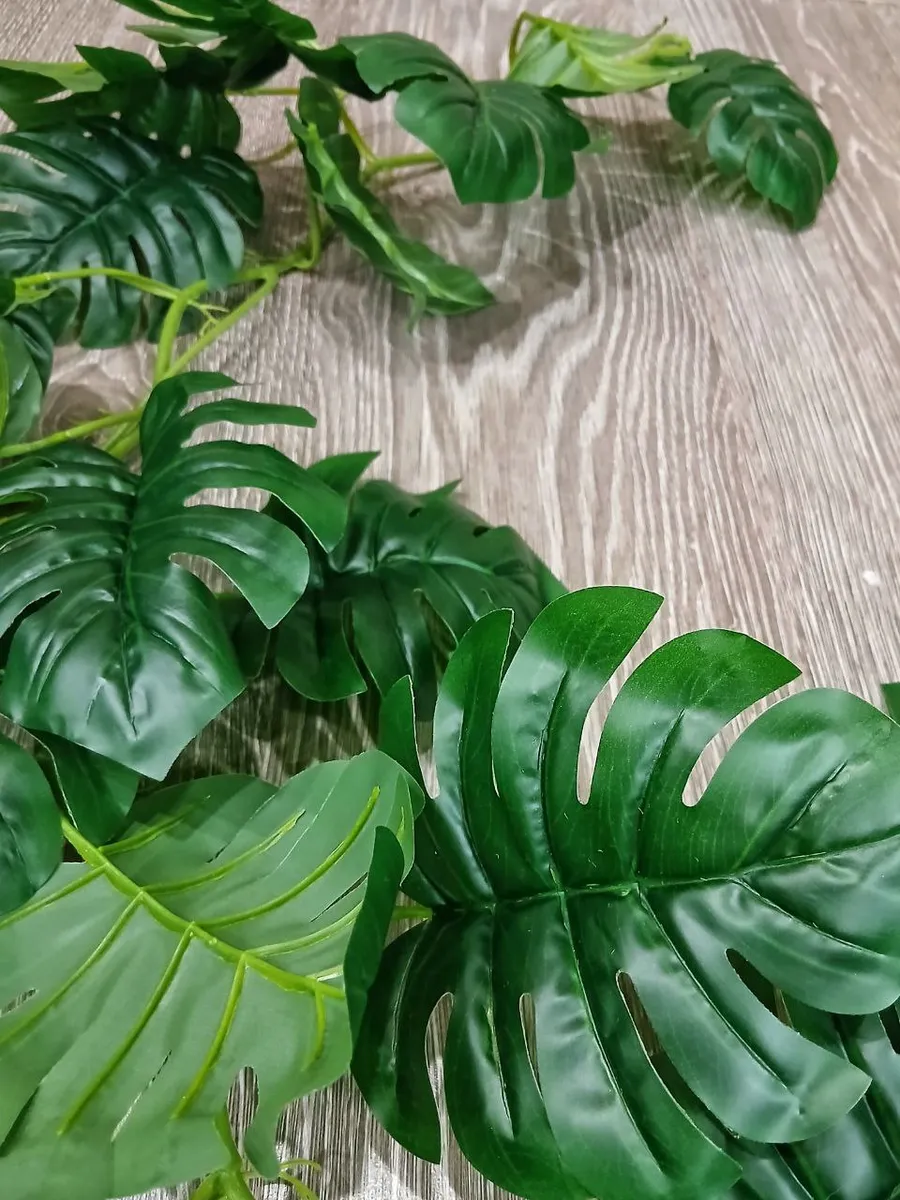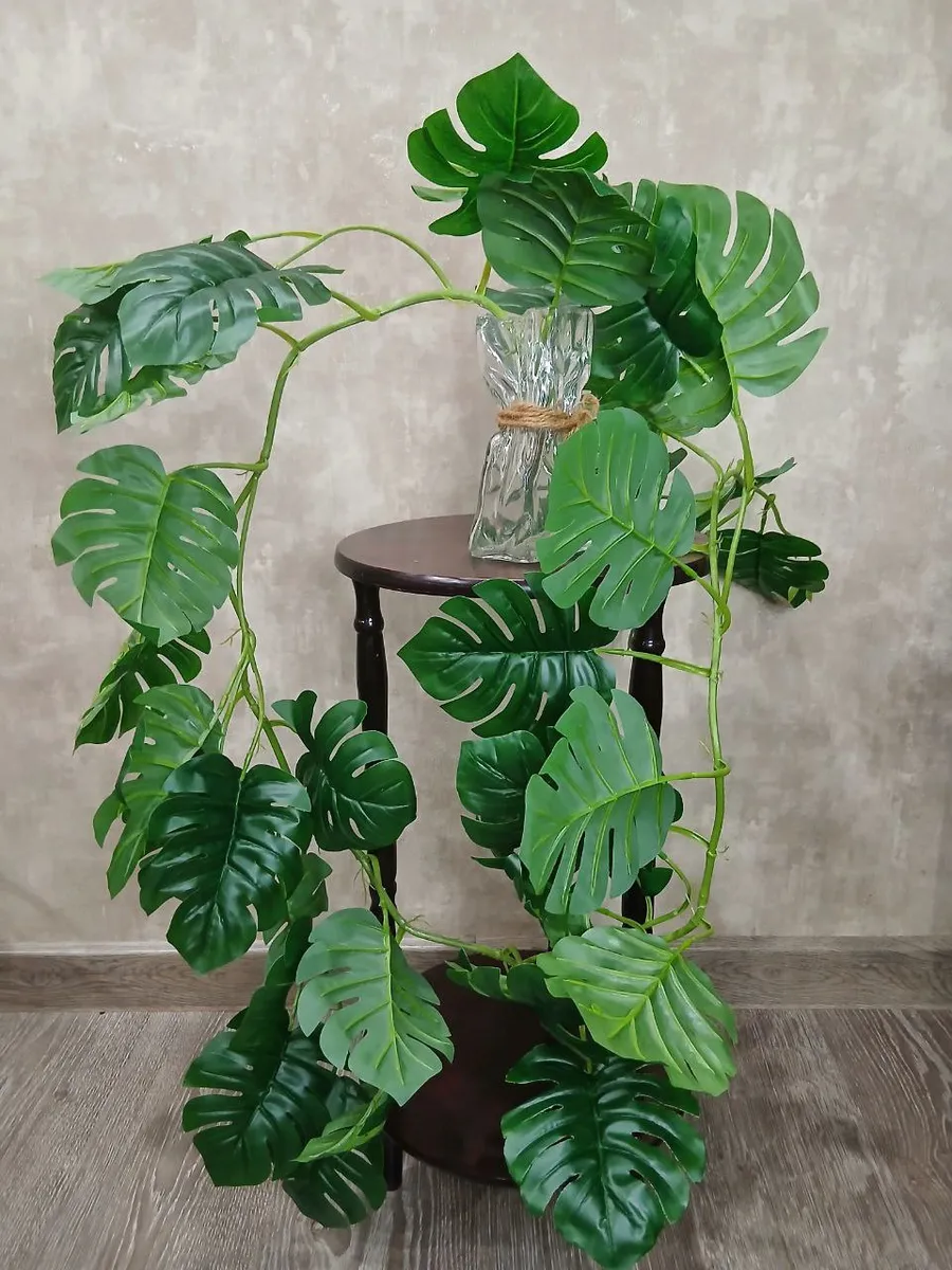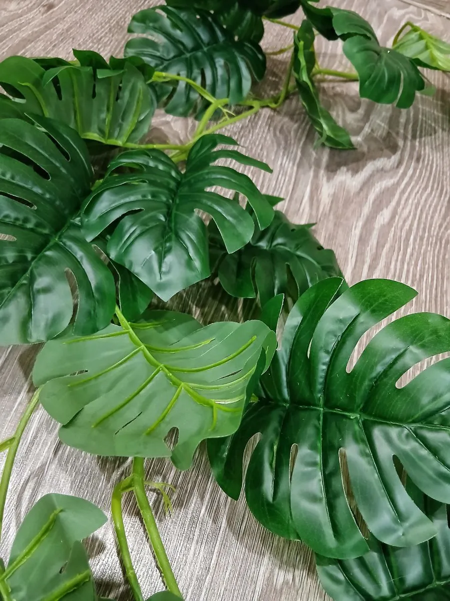 Лиана монстера с 36 листьями, высотой 1,8 метра, станет изысканным дополнением к любому интерьеру. Изготовленная из качественной ткани, она поражает своей реалистичностью и нежным оттенком зелени. Искусственная лиана не требует ухода, не имеет запаха и прекрасно впишется в любой дизайн, добавив свежести и тропического шарма вашему дому или офису.