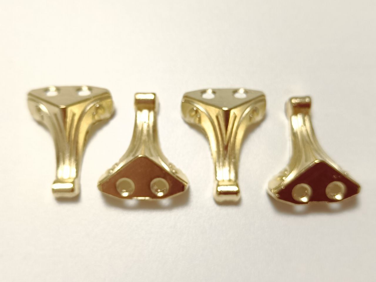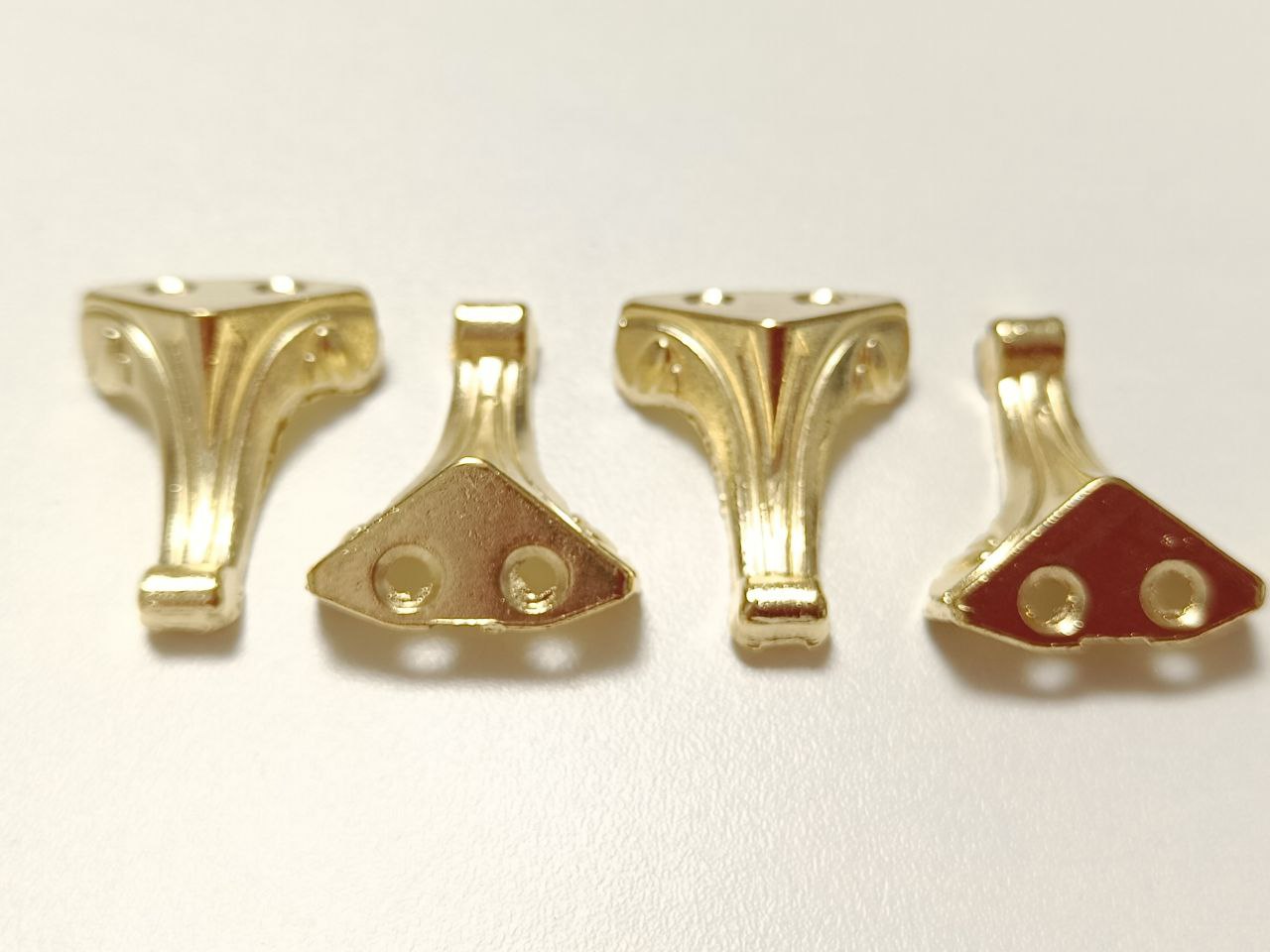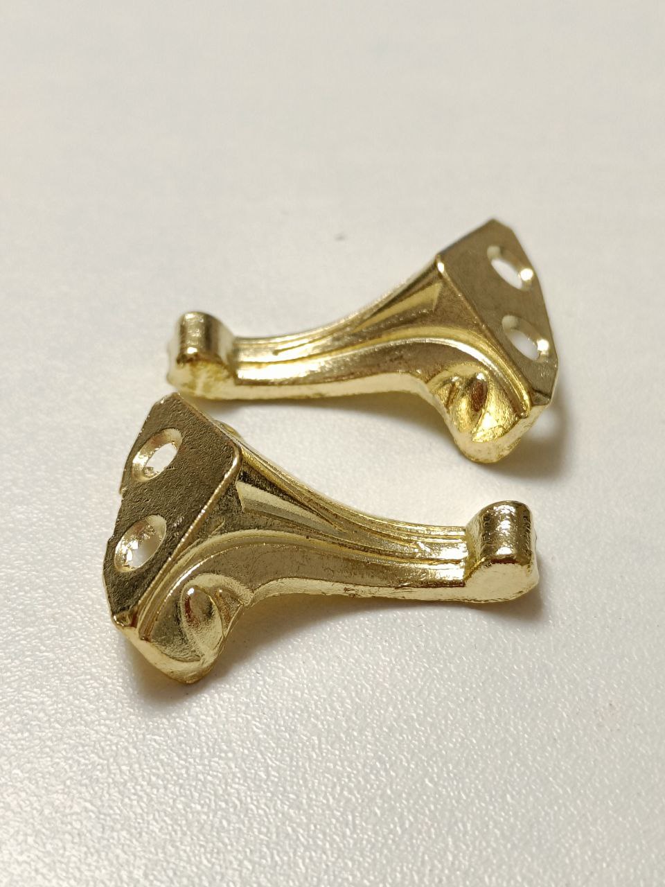 Эти ножки-уголки из металла, имитирующего благородное золото, придадут вашей шкатулке изысканность и элегантность! Можно использовать для отделки деревянных шкатулок, мини-комодов и других изделий, выполненных в технике декупаж, резьба или роспись.