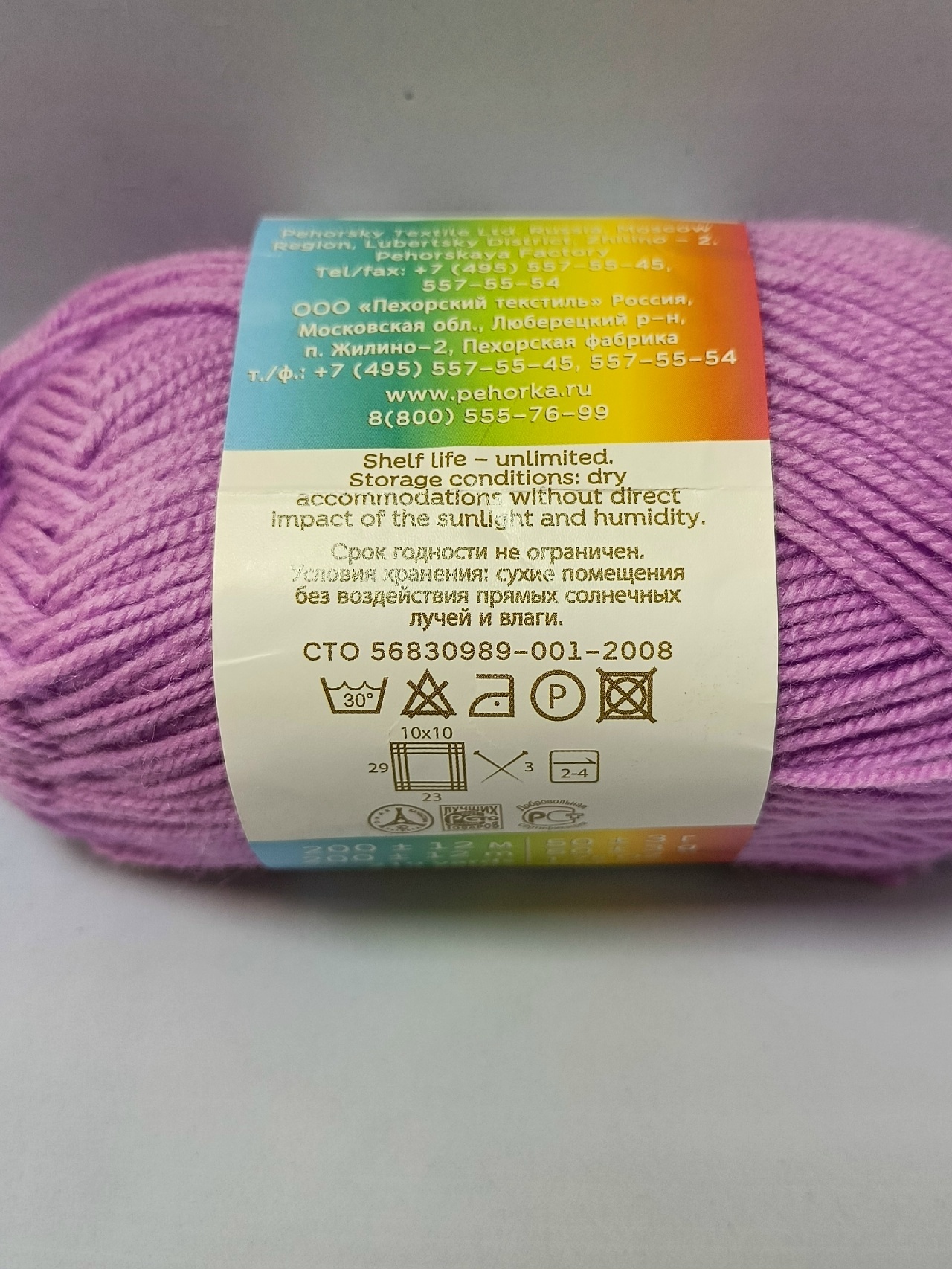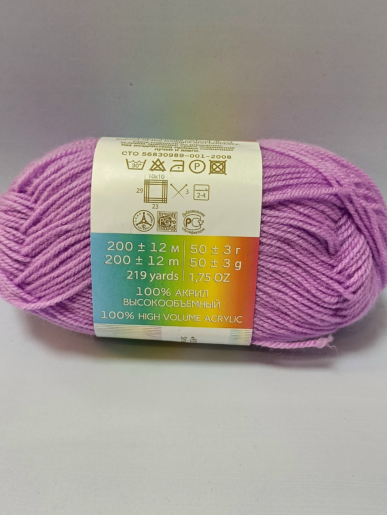 Пряжа Пехорка Детская Новинка Цвет 389 - Светлая Фиалка, 200м, 50 гр.