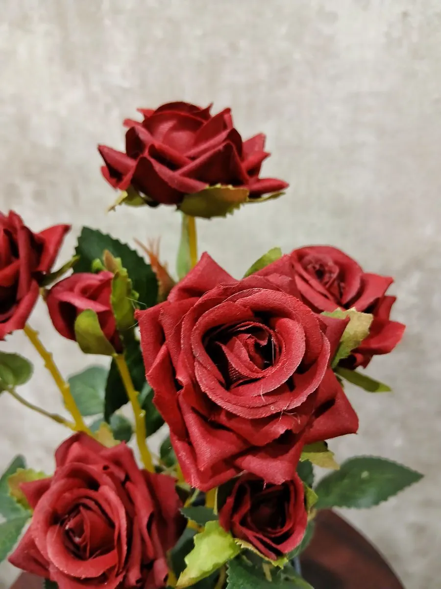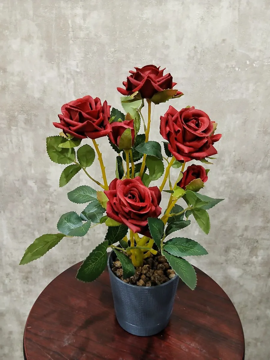 Роза кустовая бархатная — это прекрасный способ добавить изысканности и уюта в любой интерьер. Этот реалистичный искусственный куст роз, выполненный из мягкого бархата, порадует вас своей красотой и не потребует никакого ухода. Благодаря отсутствию запаха, он идеально подходит для использования в помещениях, а его компактный размер позволяет разместить его в любом кашпо. Создайте неповторимую атмосферу в своем доме с помощью этой очаровательной искусственной розы.