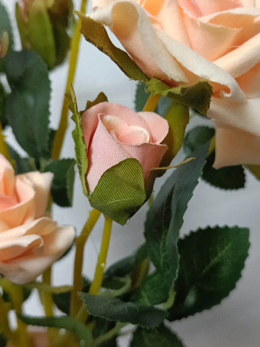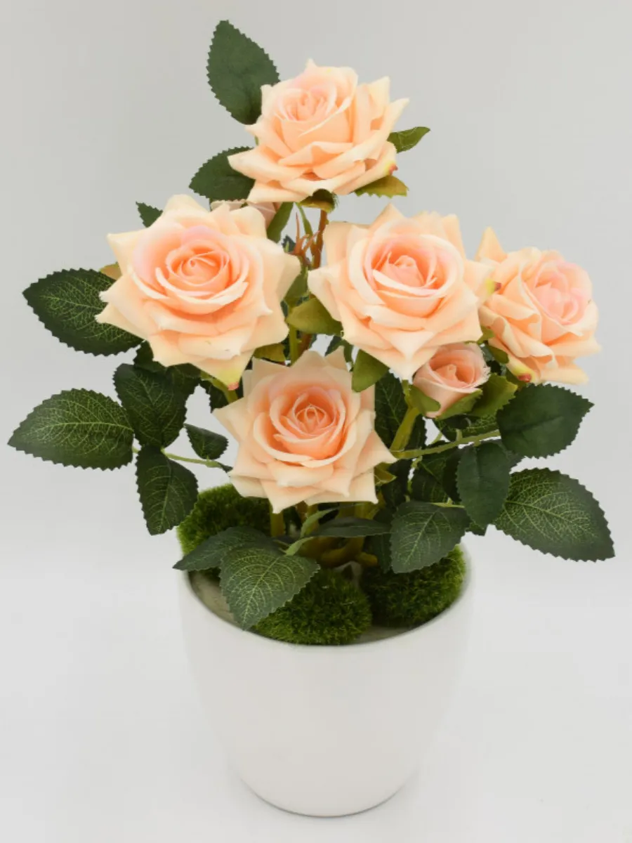 Роза кустовая бархатная — это прекрасный способ добавить изысканности и уюта в любой интерьер. Этот реалистичный искусственный куст роз, выполненный из мягкого бархата, порадует вас своей красотой и не потребует никакого ухода. Благодаря отсутствию запаха, он идеально подходит для использования в помещениях, а его компактный размер позволяет разместить его в любом кашпо. Создайте неповторимую атмосферу в своем доме с помощью этой очаровательной искусственной розы.