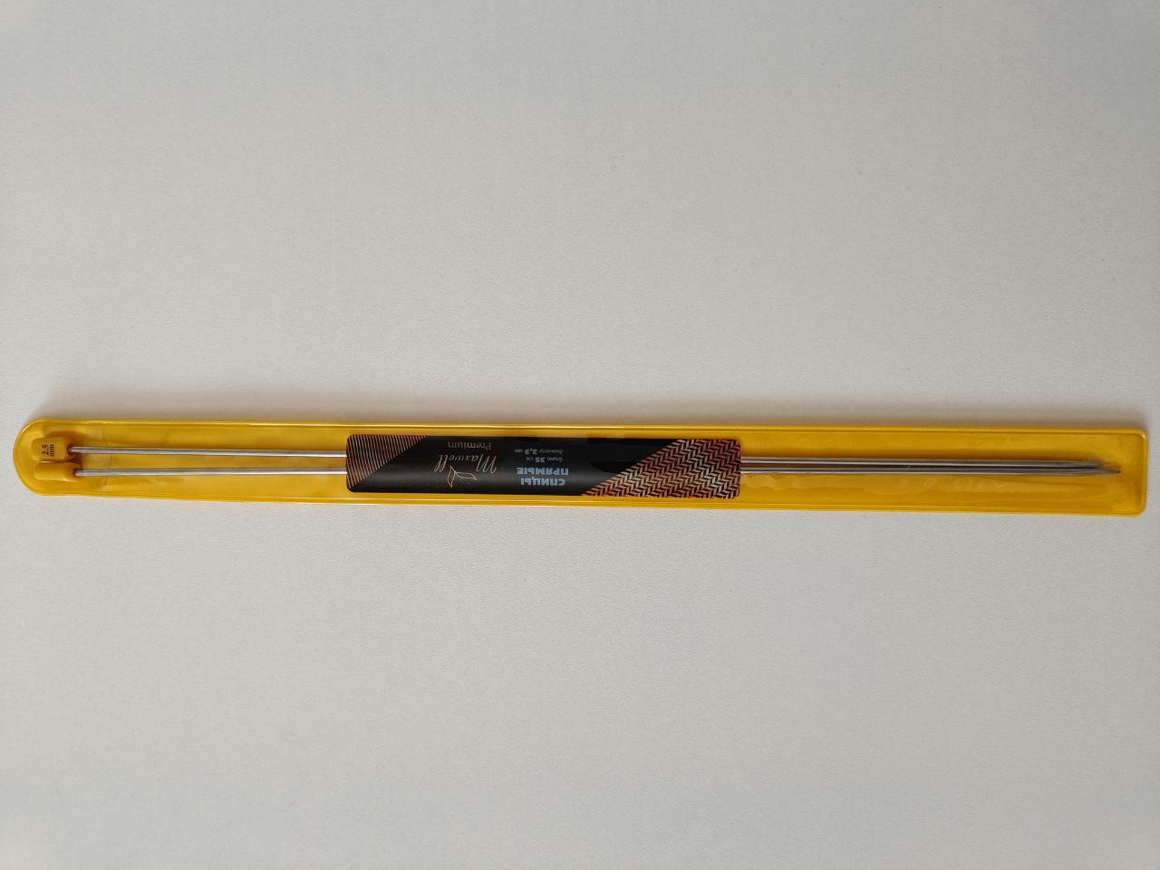 Прямые металлические спицы длиной 35 см и диаметром 3,5 мм подарят вам истинное удовольствие от вязания! Благодаря идеальной длине вы сможете работать даже с самыми крупными изделиями без напряжения рук.